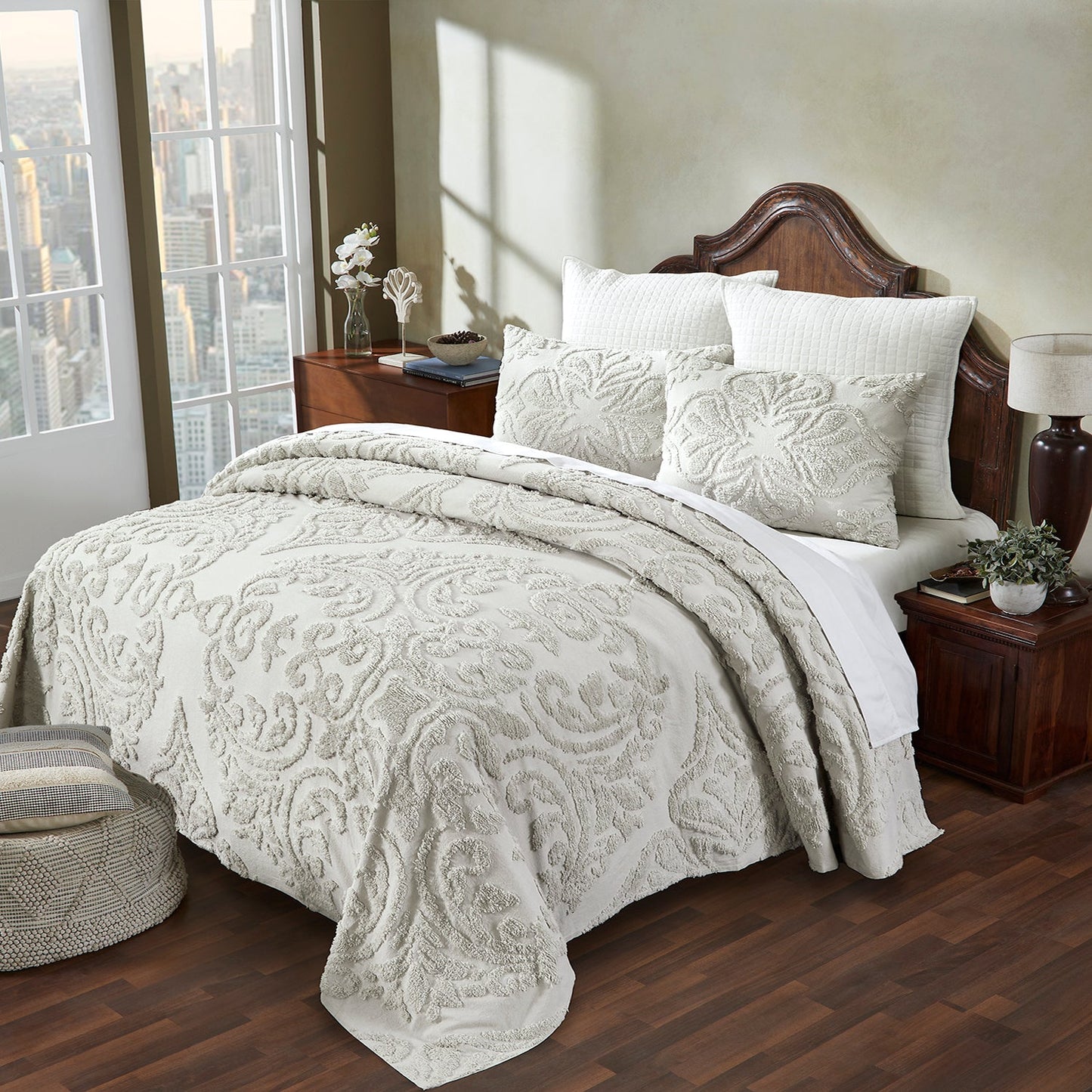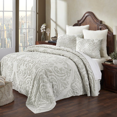 Rylee 100% Cotton Premium Chenille Bedspread Set Soft & Breathable Floral Design Machine Washable, Luxurious All Season Comfort Bedspread Set
