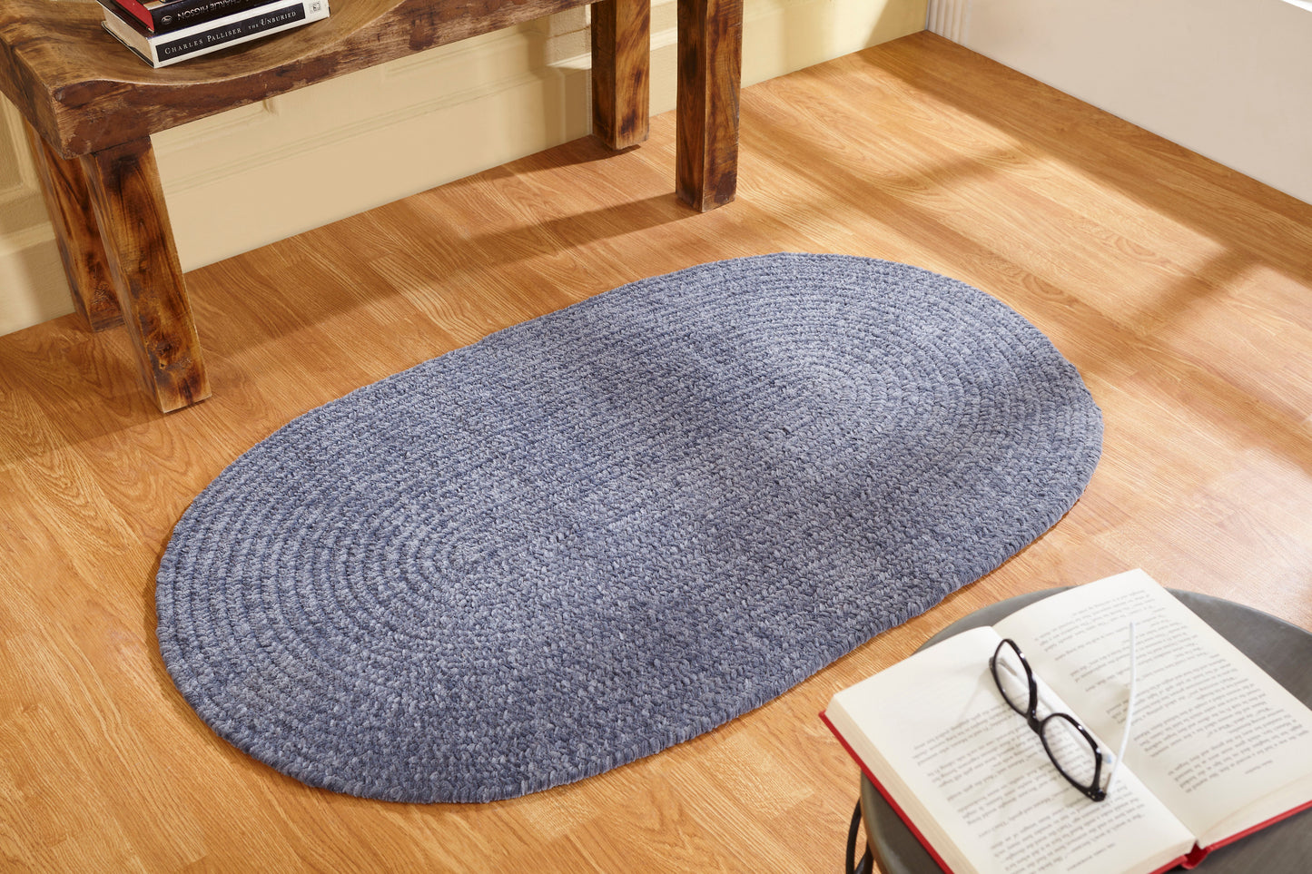 Chenille Solid Braided Reversible Rug 100% Polyester, Soft & Durable Indoor Area Rug, Solid Color, Easy Care